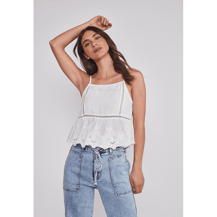 Blusa Mujer Pabilo Broderie Blanco Sioux