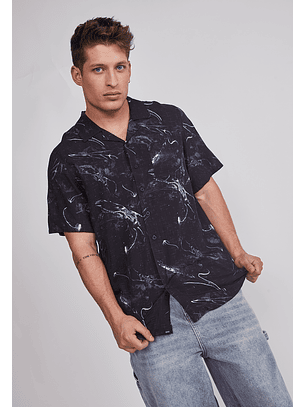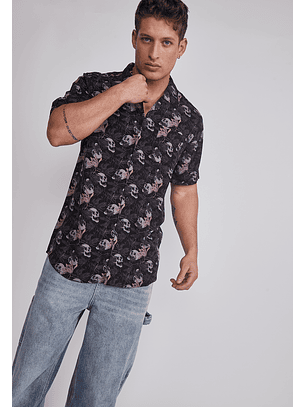 Camisa Hombre Full Print Negro Sioux