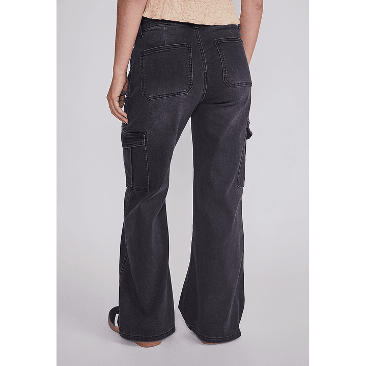 Jeans Mujer Cargo Elasticado Negro Sioux