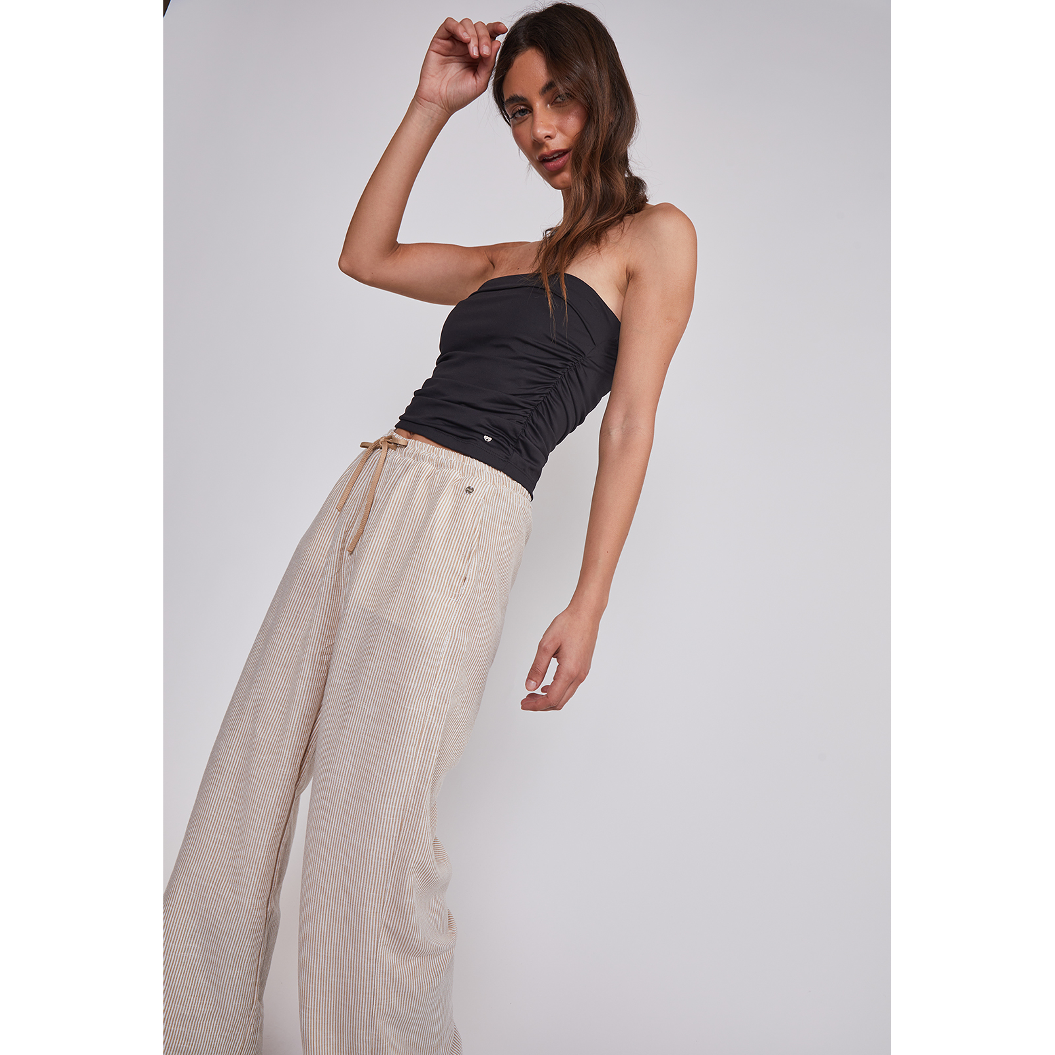 Pantalón Mujer Rustico Listado Beige Sioux