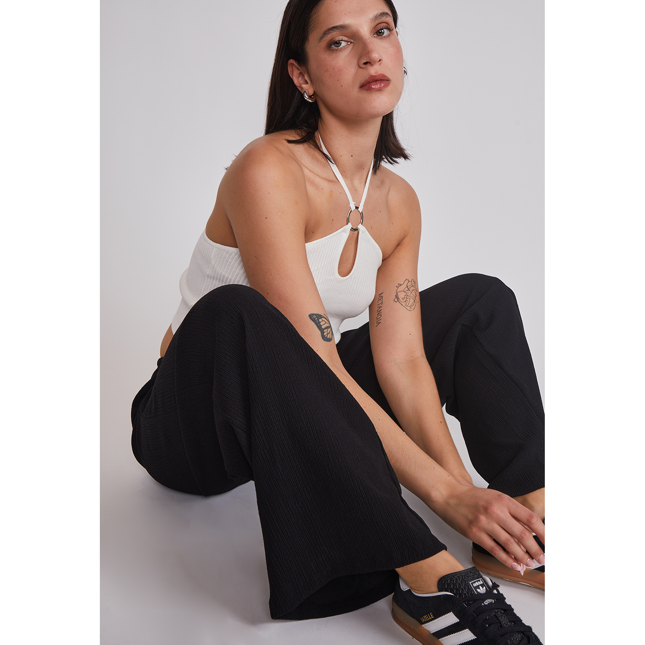 - Modelo:Javiera está usando un Pantalón talla S y mide 1.74