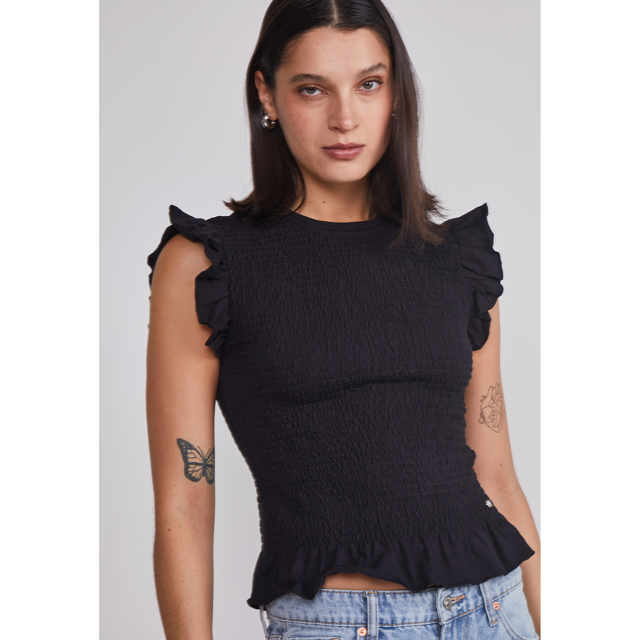 Polera Mujer Vuelos Mangas Negro Sioux